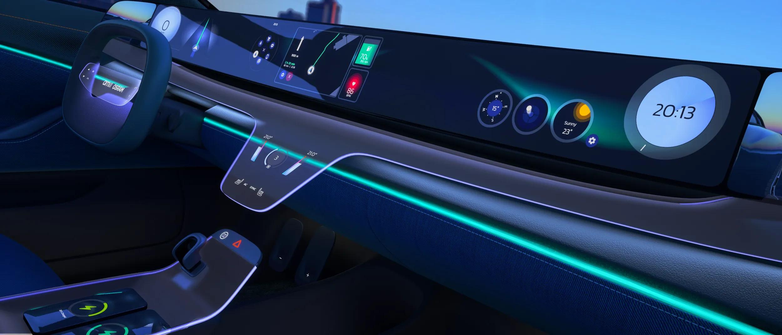 ams OSRAM supports these functions with a broad portfolio of LEDs, IR devices, ambient light sensors and drivers optimized for surface-integrated HMIs.