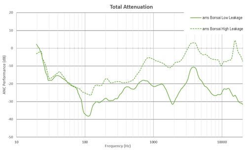 Bonsai耳塞实现的降噪效果令人惊叹。此图显示了Bonsai耳塞暴露在较高或较低泄漏环境中时提供的降噪效果: