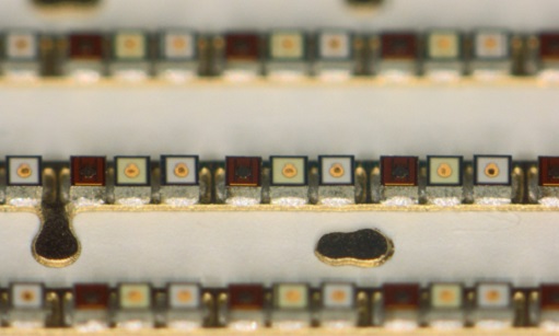 At the heart of the project was wafer level packaging as well as investigations into planar contacts. One of the pioneering approaches to emerge from the project is planar interconnect technology in which the bond wire is replaced by a thin flat metal connection. This moves the surface emitter to the surface of the package. The light can therefore be used more directly, unlike with conventional components. This leads to smaller losses in efficiency and luminance and consequently to greater brilliance and cost savings in operation. Other new technologies along the entire value-added chain for functional full-color video wall modules with a pixel pitch of 1 mm were successfully demonstrated.