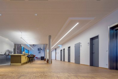 The marinaforum Regensburg, one of Bavaria's most modern and sustainable conference and congress centres, was inaugurated in April 2018. It is not a complete new building, but "builds" on the listed substance of the former old slaughterhouse in a way that conserves resources. The former main building, named the Zollingerhalle after the architect Friedrich Zollinger, also forms the core of the marinaforum. It comprises the Large Forum with around 600 m2 and space for up to 750 people, the Small Forum with space for up to 170 people and eleven workshop rooms that can be used individually and also combined. The sun-drenched foyer and the peripheral open gallery round off the unique architecture. A special eye-catcher is the timber ceiling construction in so-called Zollinger lamella construction with a ceiling height of up to 15 m at the highest point, extending over the entire building and always visible.