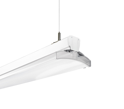 The variants with clear lens or lens with diffuse scatter particles both achieve very good glare reduction with UGR values from < 19 to < 24 (depending on type), and even versions with measurably higher values still generate no subjectively perceptible impression of glare. Direct viewing into the luminaire is possible and the perception is pleasant. Two different lumen packages are available (~6,500lm and ~10,000lm), and optionally with DALI or multi-lumen functionality (ten lumen packages in one luminaire; settable in steps of 500lm via a DIP switch).