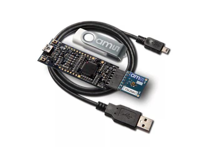 The TSL2591 Evaluation Kit comes with everything needed to evaluate the TSL2591 ambient light sensor. The evaluation kit comprises of a main controller board with a PIC microcontroller, an industry standard USB 2.0 interface (with an USB cable), a TSL2591 daughter card, "plug-n-play" USB HID class drivers, software documentation, and GUI software allowing users to control the ALS sensor settings as the PIC takes the TSL2591 I2C digital outputs to calculate ALS illuminance in lux approximating the human eye response.